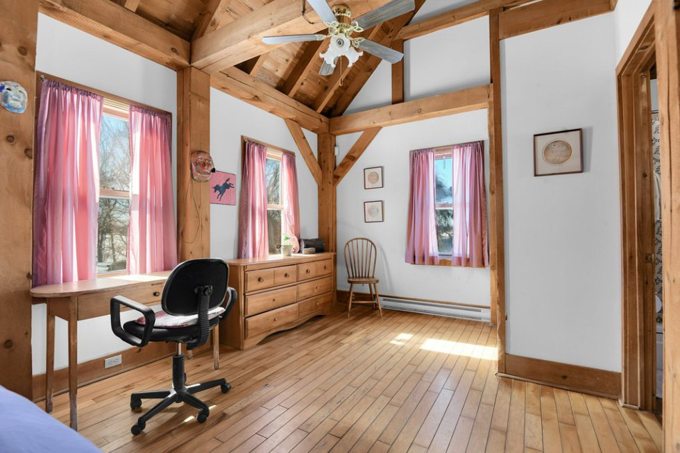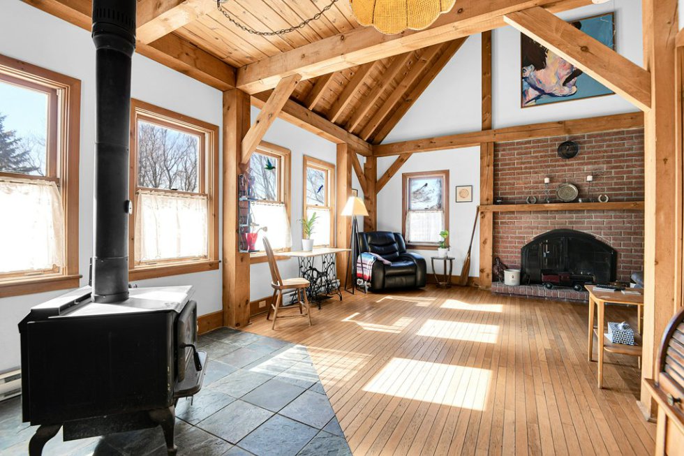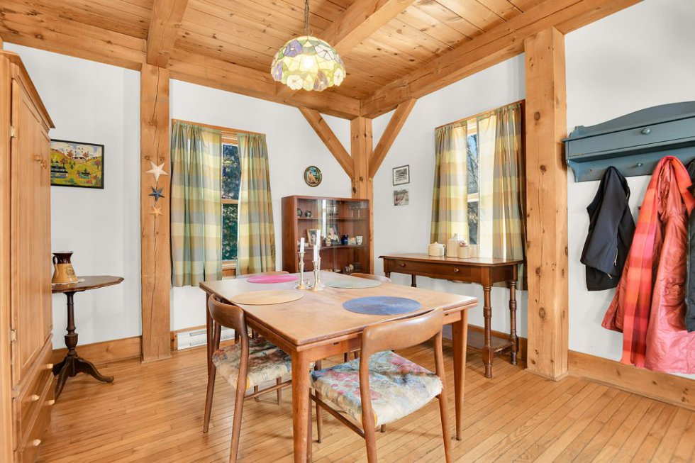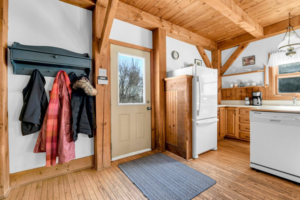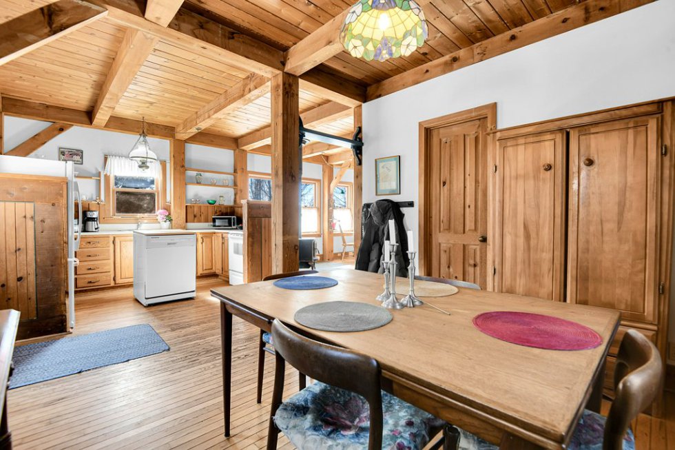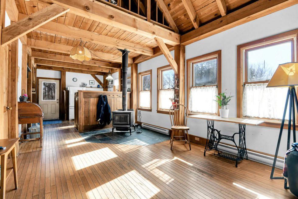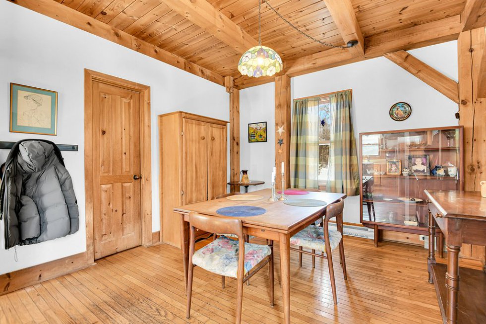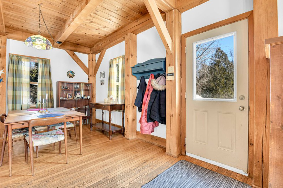 Outside, enjoy a long private driveway, metal roof, and wood siding enhancing the rustic appeal. The expansive acreage offers a mix of open and treed land with potential for hobby farming, recreation, or investment. A neighboring farmer currently uses portions for hay/soya/corn, providing a modest annual tax benefit. Serviced by private well and septic. A rare opportunity to enjoy peaceful country living without sacrificing commuting convenience.