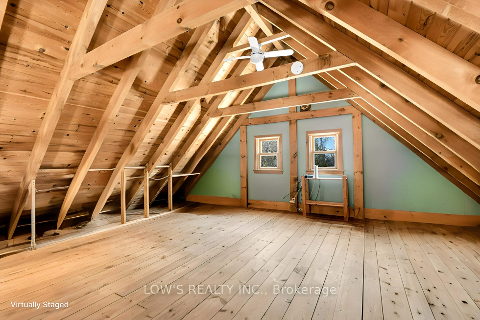 Zoned AGR, this versatile property offers privacy, space, and rural character while remaining conveniently located for commuters - with easy access toward Alexandria, Hawkesbury, Cornwall, and Highway connections to Ottawa and Montreal. Warm wood finishes, wood flooring, and exposed wooden beams create inviting country charm. The living room features a cozy wood stove, complemented by electric heat and a brick fireplace (presently not functional). The kitchen includes wood flooring, stove, and fridge. Two bedrooms and two full bathrooms provide practical living space, including an ensuite with tub/shower combination. A loft offers flexible space for additional sleeping, office, or hobby use. The finished basement expands the living area with a huge, bright office or potential third bedroom featuring large windows and an oversized closet just shy of walk-in size. The lower level also includes laundry with tub sink, washer & dryer, utility/storage area with 200-amp service, workshop space with sump pump, water softener, pressure tank, and an owned electric hot water tank (2017).